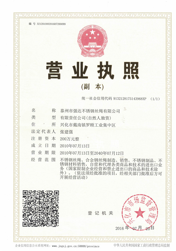 您好,歡迎訪問泰州市強達不銹鋼絲繩有限公司官網!